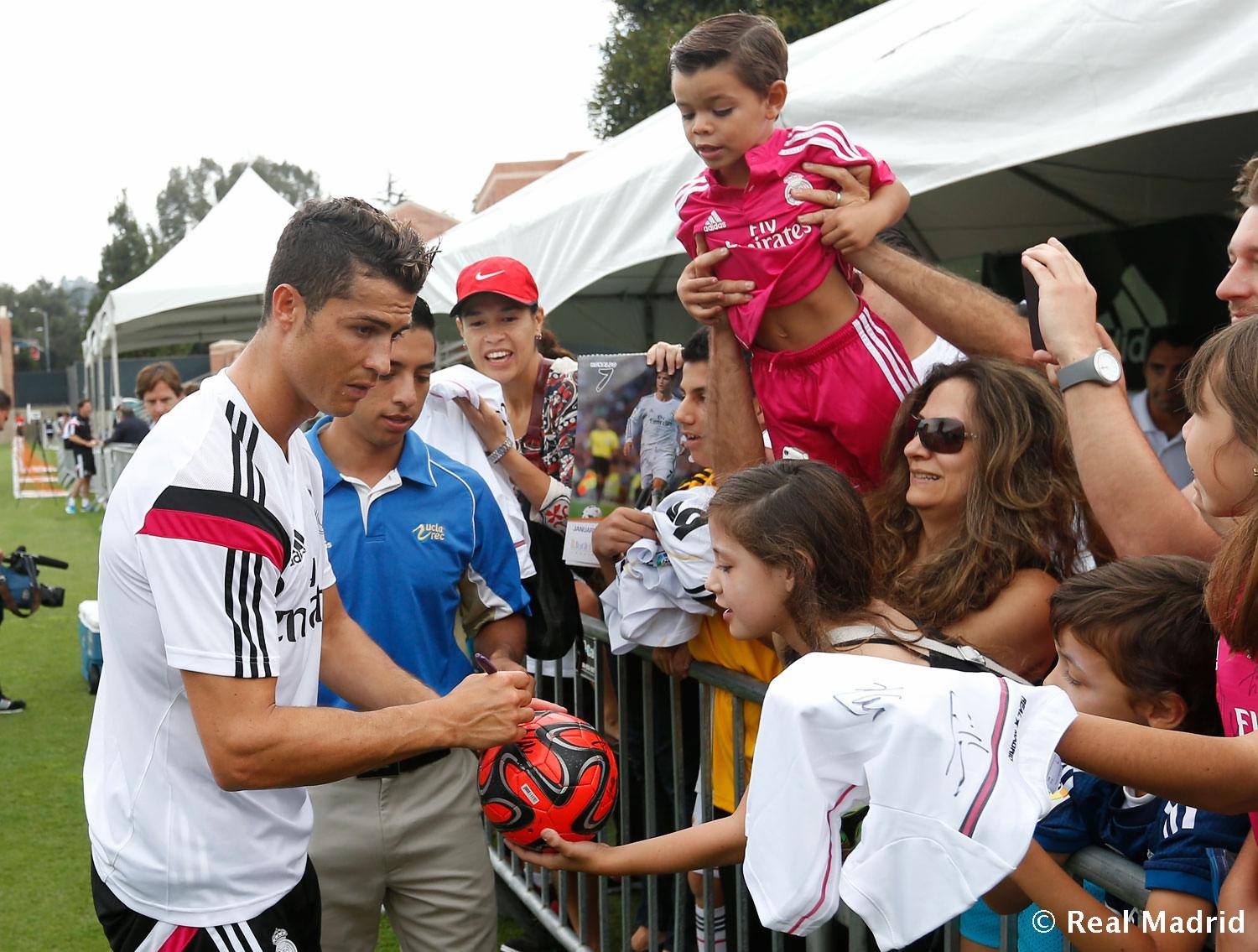 الساندرو ال پیرو، مهاجم افسانه ای سابق باشگاه یوونتوس (و بازیکنی که هنوز بعد از دو فصل حضور در سیدنی استرالیا به بازی کردن ادامه می دهد) در آخرین روز حضور مادریدی ها در شهر لس آنجلس، برای احوال پرسی به اردوی این تیم سر زد.